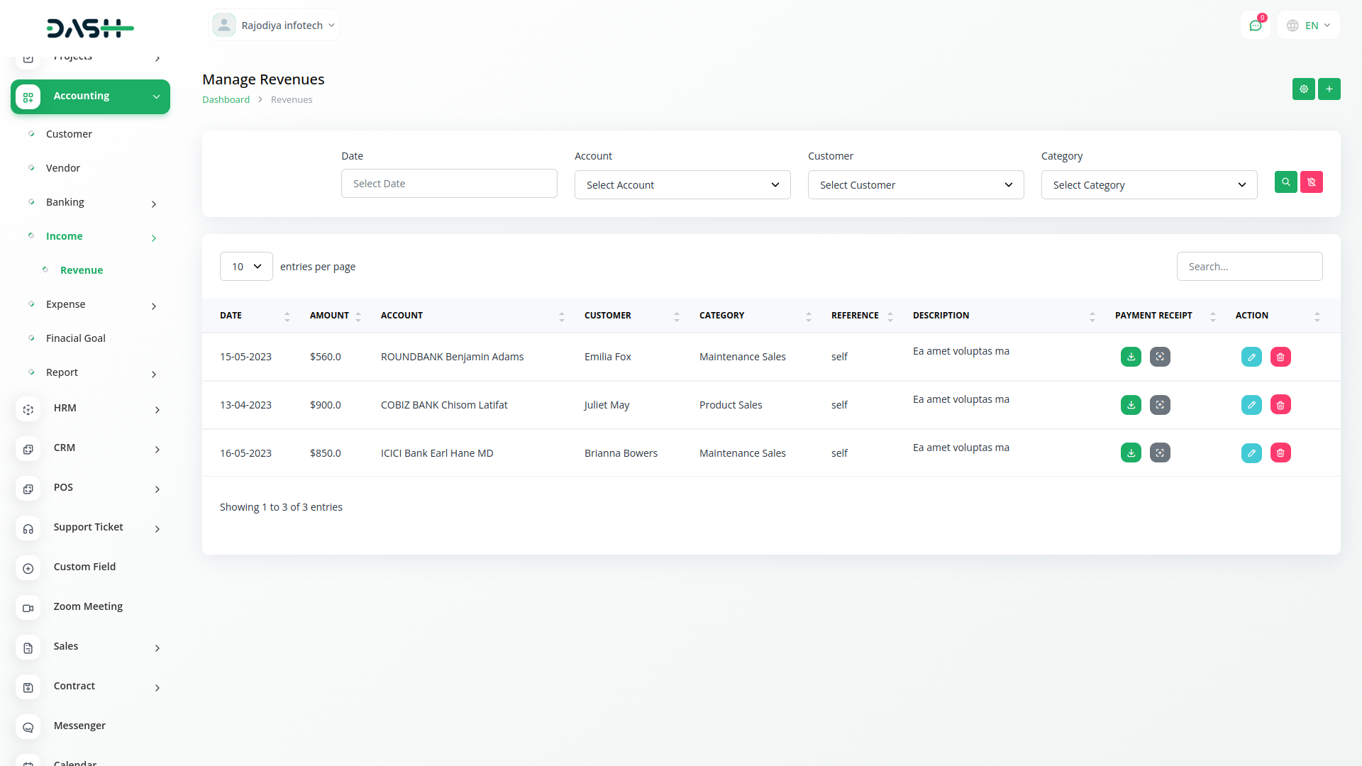 Account is an account management software that facilitates ease in revenue calculation by keeping a tab on all the accountancy matters of business. Based on Laravel, this accountancy software will make your business operations smooth and convenient. A graphical and tabular representation of various elements will help you make informed decisions for your firm.