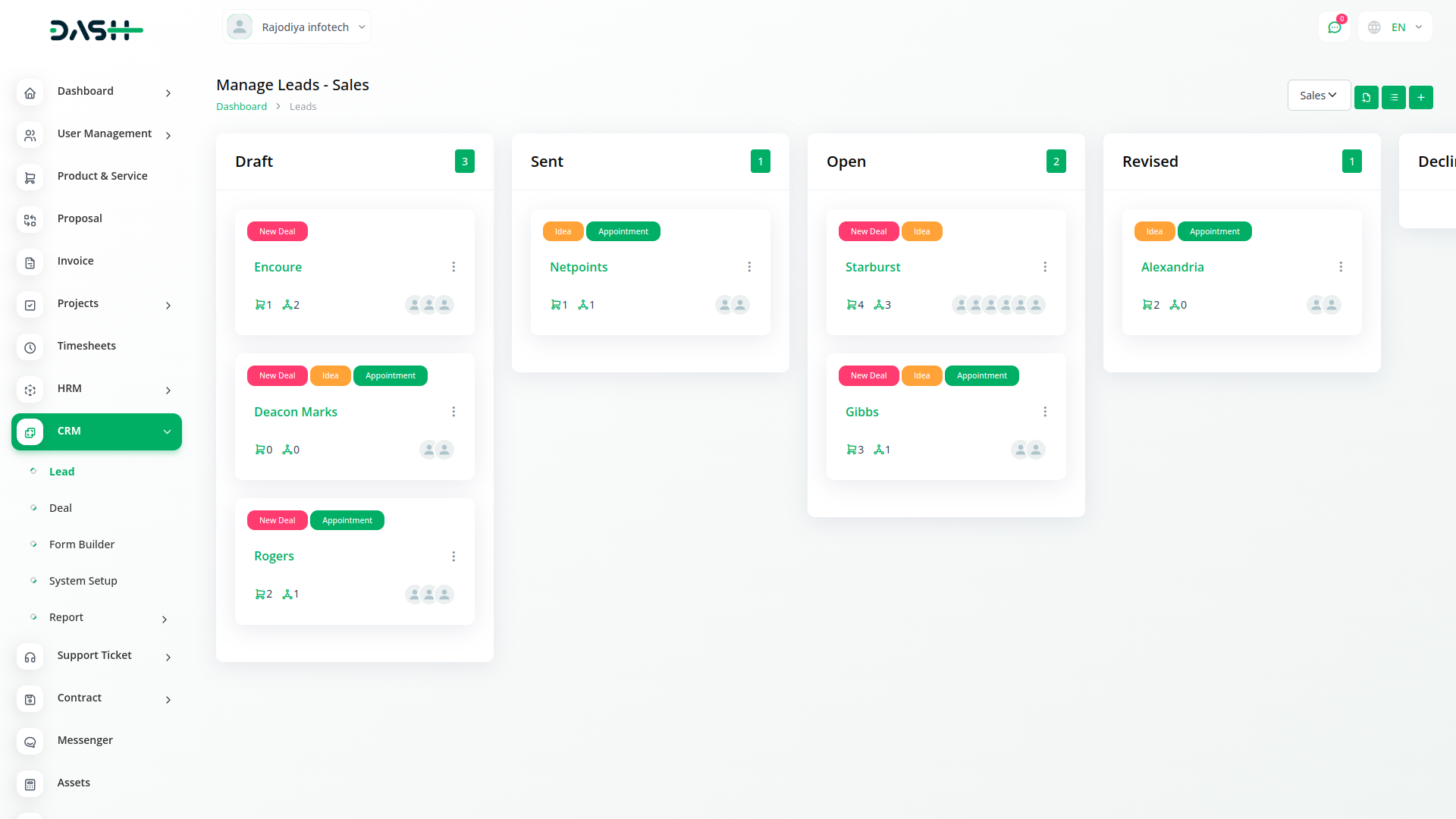 Manage deals with an easy drag-and-drop system. Easily relocate the deals to various stages through the Kanban board system.